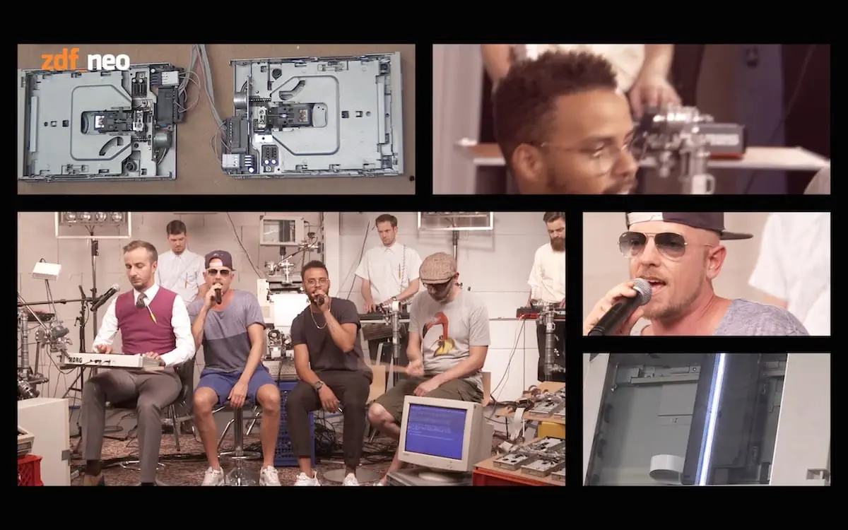 Retro-Future-Sound vom feinsten im »Neo Magazin Royale«. Denn da performten Denyo, Eizi Eiz und DJ Mad gemeinsam mit dem Geekchester und Polizistensohn Böhmermann eine PC-Version von »Hammerhart«. Die Modem-Sound-Geeks lieferten dazu mächtig technischen Support: Diskettenlaufwerke, Scanner, Nadeldrucker und Schreibmaschinen. Dazu noch Böhmermann am Keyboard und die Beginner am Jammen. So wird garantiert jeder Technik-Hater zum Computer-Freak.