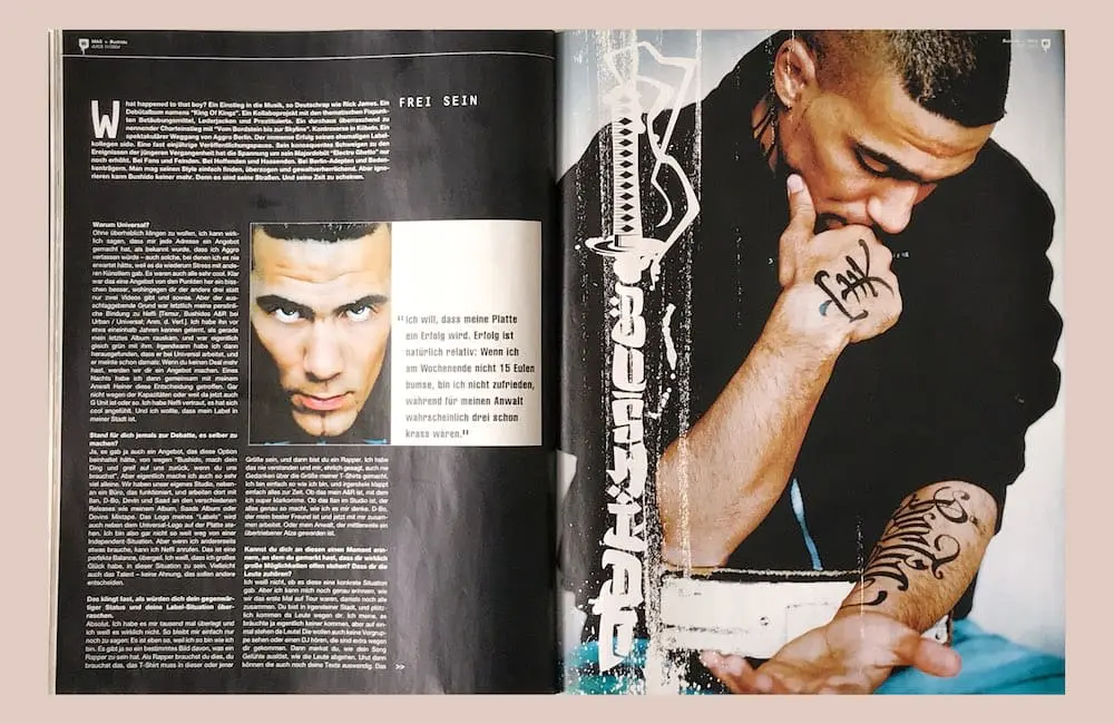 Ich habe immer gesagt: Wenn ich Musik mache, dann will ich etwas bewegen und den Fans etwas mitgeben. Aber andererseits will ich auch so viel Geld verdienen, dass ich mich totfressen kann. Ganz normal, Alter. Wenn du mit deiner Immobilienfirma eine Million gemacht hast, gratulieren dir ja auch alle und alle Frauen wollen mit dir bumsen. Aber als Rapper darfst du nicht erfolgreich sein und nicht gut aussehen, sondern nur deine komischen Vorstellungen pflegen. Aber ich will in die JUICE, ich will zu Viva, ich will zu MN. Ich will das haben, denn für diesen Scheiß habe ich mein Leben weggeworfen. Und wenn ich das nicht bekomme, dann habe ich’s verkackt.