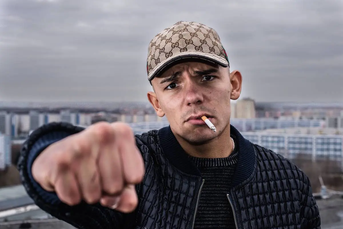 Leute wie er? Geboren wird Capital in Sibirien, mit seinen Eltern zieht er weiter in die Ostukraine und landet schließlich in Berlin. Nicht im hippen Gute-Laune-Berlin, sondern in Hohenschönhausen. Da, wo sich Hooligans zwischen den Monolithen die Köpfe einschlagen. Mit denen kam Capital immer halbwegs zurecht, so sagt er. Sogar beim Fußballklub BFC Dynamo Berlin spielte er in der Jugendelf mit. Als einziger Migrant wohlgemerkt, in einem Verein, dessen Fans immer wieder rechte Tendenzen nachgesagt werden. Capital jedenfalls besticht durch Talent. Das beweist er nicht nur mit dem Fuß, sondern auch in Straßenangelegenheiten. Schon früh beginnt er »Mist zu machen«, landet in Jugendhaft. Es geht ums Geld machen, wie auch sein Künstlername plakativ auf den Punkt bringt. Dann, zwischen Shisha-Blubbern und arabischer Musik, sagt Capital folgenden Satz: »Entweder du machst hier Sport, Musik oder bekommst Hartz IV. Wenn es mit Musik nicht klappt, mache ich eben wieder Sachen auf der Straße, Bra«, dann ein schelmisches Lachen, das die Aussage harmloser erscheinen lässt als sie ist. Es klingt wie eine unterschwellige Drohung.