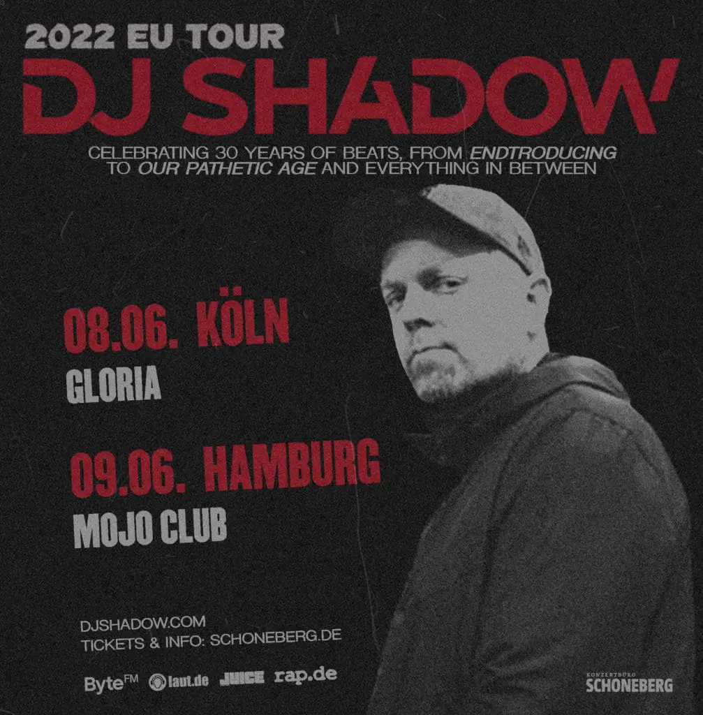 Nun kommt DJ Shadow im Rahmen seiner „30 Years Of Beats” Tour für zwei Termine nach Deutschland – präsentiert von der JUICE. Seine Liveperformances sind legendär. Ein audio-visuelles Gesamtkonzept, bei dem er seine Tracks an Turntables, Samplern und Effektgeräten live de- und re-konstruiert sowie seine unbestreitbaren Skills an den Decks haben ihm den Spitznamen „the DJ’s DJ” eingebracht.