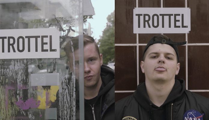 Wie hart und wie lange man sich den Frühjahrshit »WKM$N$HG« von Fruchtmax und Hugo Nameless tatsächlich gönnen kann, wurde in den letzten Wochen eindrucksvoll bewiesen. Immer neue Versionen des Tracks kochten aus dem Internet hervor und Szene-Größen von K.I.Z bis Frauenarzt gaben das gar nicht so lange gejagte Hak. Parallel zur wachsenden Fanbase wuchs auch die Schar der hassenden Randalebrüder, die es den beiden in Facebook- und Twitter-Kommentaren mal so richtig zeigen wollten. Schließlich ist »das kein richtiger Rap«, wie eine beliebte Floskel der allgegenwärtigen Trolle heißt. Max und Hugo ist das reichlich egal. Sie spielen lieber Live-Gigs en masse, laufen trinkend durch die Stadt und lächeln die negativen Vibes einfach weg. Er »Juckt« sie halt, der Aufschrei der Provozierten. Der Erfolg gibt ihnen recht. In unserer JUICE Premiere nehmen sie mit einer gesunden Portion Selbstironie auch dem letzten Vandalen den Wind aus den Segeln. Sie versuchen gar nicht erst zu verstecken, dass auch sie ab und zu mal ihren inneren Trottel raushängen lassen. Auch die Einordnung in die Trap-Schublade »Juckt« beide. Max hat bei den Kollegen von Noisey letztens ein Boombap-Tape auf Kassette angekündigt. Ist das dann eigentlich immer noch »kein Rap«? Ach: »Juckt« doch.
