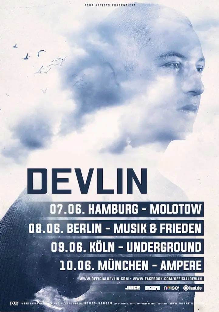 UPDATE: Leider muss Devlin seine Konzerte in Deutschland aufgrund unvorhersehbarer Studiotermine absagen. Tickets können dort zurückgegeben werden, wo sie gekauft wurden.