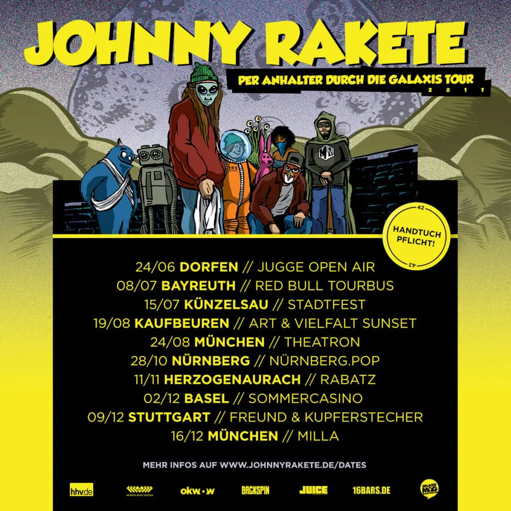 Seine »Macht’s gut und danke für den Fisch«-Tour musste Johnny aus gesundheitlichen Gründen nach drei Shows abbrechen. Aber Kopf hoch, Kids, die Festivalsaison kommt nicht ohne ihren Lieblingsastronauten aus und die verlegten Shows werden im Anschluss nachgeholt. Zehn Gelegenheiten gibt’s in diesem Jahr noch, sich von Raketes mystischem Können zu überzeugen. Gönnt euch bis dahin nicht zu viel Oregano, die Texte müssen sitzen und der Kopf für Raketes Genius-Matroschka klar bleiben.