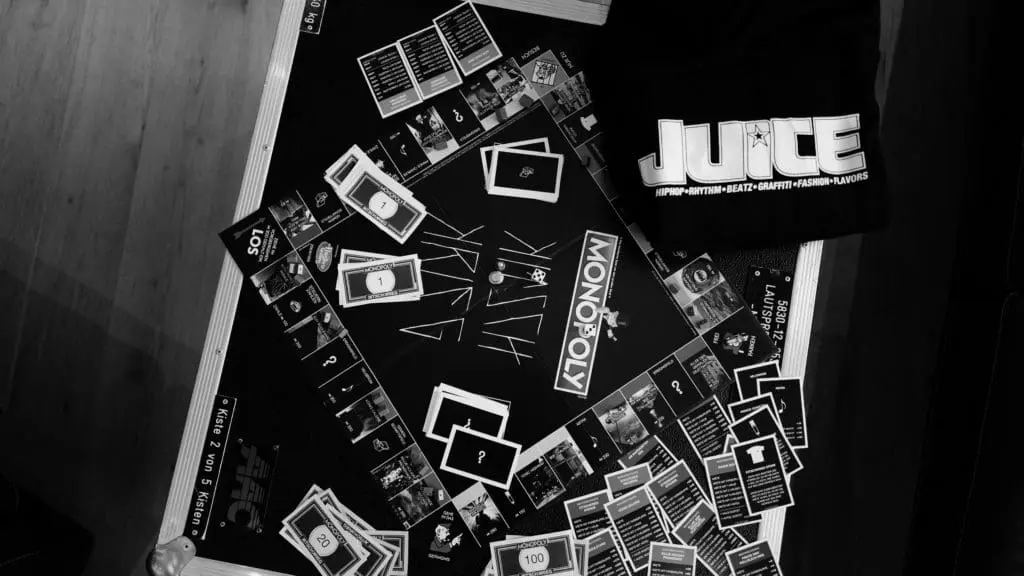 Ihr könnt eine der begehrten Versionen vom KitschKrieg Monopoly bei uns gewinnen, außerdem legen wir noch drei Hoodies aus der längst vergriffenen KK X JUICE Kollaboration drauf. Insgesamt verlosen wir damit drei Spiele mit jeweils einem Hoodie, die in den Größen S, M und XL vorhanden sind. Um am Gewinnspiel teilzunehmen, schreibt uns eine Mail mit dem Betreff »KK Monopoly«, eurem bürgerlichen Namen, eurer Adresse und dem Größenwunsch für den Hoodie an redaktion[at]juice.de. Einsendeschluss ist 11.07.21, wir melden uns bei den Gewinner*innen per Mail.