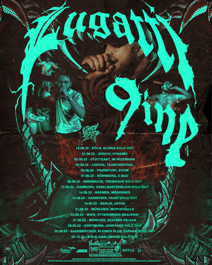 Die Kölner Jungs Lugatti & 9ine gehen auf Tour und haben bereits neue Tracks in der Pipeline. Mit »Frisches auf dem Herd« haben die beiden dieses Jahr bereits ein Album releast, das stilsicheren Untergundtrap abbildet. Zusätzlich steht im November mit »Man kennt sich 3.0.« die Fortsetzung ihrer Mixtape-Serie an. Der Hustle wird mit einer Tour belohnt, die in fünf kuscheligen Locations stattfinden wird. Also zieht euch den Umbro Tracksuit an, nehmt ein Tyskie als Wegbier mit und schaut bei den Shows vorbei. Mittlerweile haben die Kölner sogar noch einen zweiten Tourblock angekündigt.