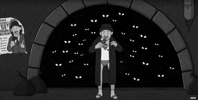 Ein Nagetier muss tun, was ein Nagetier tun muss. Zum Beispiel sich im Dreck der unterirdischen Kanalisation herumtreiben und die Menschheit aus dem literarischen Untergrund heraus beobachten. Biberpateakak Mundraub und Nacktmull releasen heute nicht nur ihr gemeinsames Album »Nagetiertape«, sondern bringen das Video zu ihrer Single »Sonne« gleichzeitig als JUICE Premiere raus. Als animierte Comicfiguren bewegen sich die beiden Protagonisten durch die mehr als lebendige Kanalisation, in der Ratten, Schmutz und Abfall ihren Weg begleiten, während drei Lichtstrahlen aus dem Gullideckel zur Sonne werden. Diese Perspektive steht dem Deutschrap-Mainstream entgegen, dessen Sonne Narzissmus und Klickzahlen sind. Ideale von denen Biberpate und Nacktmull lieber Abstand nehmen und es sich in der dreckigen, aber dafür realen Umwelt bequem machen. Trockener BoomBap im Loop statt auf Hochglanz polierter Müll ohne Message. Das »Nagetiertape« vereint symbiotisch die Soundgrundlage vom Beat-Punk Nacktmull mit der schmunzelnden On-Pointness des Biberpaten und nagt damit endgültig an der Wackness der Raplandschaft, bis kein Baum mehr steht.
