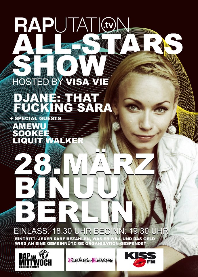 In den letzten Monaten suchten die guten Menschen von RAPutation in ihrer Online-Casting-Show nach dem besten politischen Nachwuchs-Rapper. Aus über 250 Bewerbern haben sie jetzt den Sieger gefunden: Drob Dynamic aus Berlin. Der 22-Jährige darf sich jetzt den besten politischen Rap-Newcomer nennen und dazu mit Melbeatz einen Song aufnehmen. In mehreren Runden lieferten sich die Teilnehmer ein Battle, bei dem es nicht darum ging, die Gegner fertig zu machen, sondern durch Inhalte zu überzeugen. Am 28.03. findet in Berlin die große »RAPutation All-Stars«-Sause statt. Neben den zehn Finalisten wird Drob Dynamic seinen Song präsentieren und einige hochkarätige Special Guests wie Amewu, Sookee und Liquit Walker auf der Bühne stehen. Den Eintritt bestimmen die Besucher übrigens selbst. Die Erlöse werden an eine gemeinnützige Organisation gespendet.
