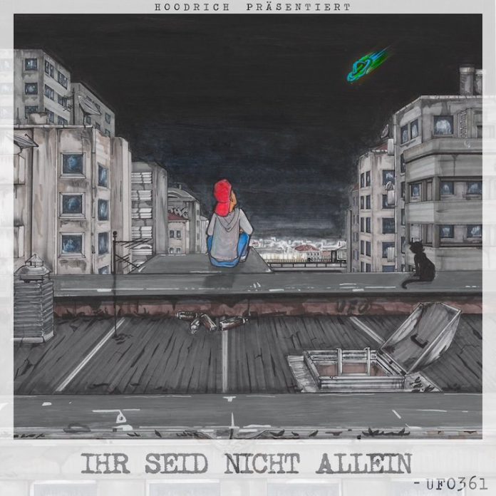 Ufo361 liebt die Freiheit. Das Kreuzberger Gewächs liefert nach dem Album von Labelkollege Said mit »Ihr Seid Nicht Allein« das nächste hochwertige Release der Hoodrich Clique ab. Der Longplayer besticht vor allem durch die Authentizität des Protagonisten. So bekommt man einen unverblümten Einblick in das Leben des Ufo361, der sich mit Mitte zwanzig als Writer, Rapper, Weedsmoker und Weiberheld auch über die Grenzen Berlins hinaus einen Namen gemacht hat. Seine Me-Against-The-World-Attitüde, die er gleich zu Beginn in der sehr gelungenen 2Pac-Hommage »Pac« preisgibt, scheint ihm offensichtlich schon viel Freude bereitet zu haben – doch eben nicht nur. Das unbekümmerte Ausprobieren wird irgendwann zur Abhängigkeit, vor allem in puncto Graffiti und Gras, und mittlerweile hat Ufo gemerkt: »Vor mir selbst gibt es keine Flucht«. Eine gewisse Perspektivlosigkeit lässt den Kreuzberger aber nicht rumjammern. Stattdessen wird weiter geackert und Optimismus gewahrt. Dass Ufo vor allem beim musikalischen Schaffen den Kopf nicht hängen lässt und weiß, was er tut, bezeugen die originell ausgearbeiteten Tracks, deren Arrangements sich deutlich voneinander abheben und so jede Gefahr einer vorhersehbaren Produktionslinie umgehen. Ufo ist eher Anarcho als ordnungsliebend und in der alten Schule zu Hause. Flow- und beat-technisch macht sich das besonders auf »Kreuzberg 96« und »Seit dem ersten Tag« bemerkbar, in dem Ufo das Leben eines Writers mit dazugehöriger Yard-Atmosphäre treffsicher einfängt. Der Reggae-Song »GanjaBoi« und die Dubstep-Einflüsse auf »Atom« verpassen der Platte schließlich zusätzliche Farbe. Dass alles »Hip Hop« bleibt, ist dabei unbestreitbar, und Ufo361 weiß eben, wie das Leben so spielen kann, wenn man »nichts (…) außer HipHop im Kopf« hat. Damit ist er sicher nicht allein und so hätte die Solidaritätsbekundung des Albumtitels nicht besser gewählt sein können.