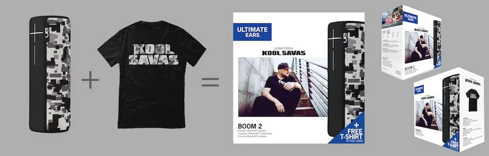 Auch 19 Jahre nachdem ihm der Featurepart auf STFs »Ihr müsst noch üben« erstmals überregionale Aufmerksamkeit einbrachte, beschreitet Savas noch Neuland. Diesmal in Form einer Kollabo mit dem Sound-Experten Ultimate Ears. Exklusiv über Media Markt erscheint heute der mobile Bluetooth Speaker BOOM 2 als Limited Edition by Kool Savas. Die Box ist ein echter Alleskönner und der perfekte Begleiter für unterwegs: schmutz- und wasserabweisend dank IPX7-Zertifizierung und mit Pairing-Kompatibilität für bis zu 150 Speaker ausgestattet, erweist sich die Savas-Limited-Edition dank slickem Camouflage-Design als echter Hingucker. Für den UVP von 149 Euro gibt’s übrigens nicht nur den Speaker, sondern auch noch ein exklusives Kool-Savas-Logo-Shirt obendrauf.