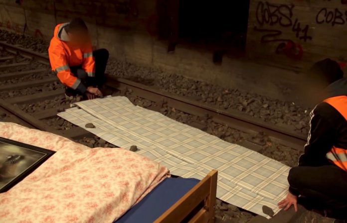Dass sich aus der Berliner Graffitiszene heraus gerade spannende Urban-Art-Projekte entwickeln, sollte mittlerweile dank der TOY Crew bekannt sein. Während die Gruppe in ihren Guerilla-Aktionen noch deutlich anarchischer und abstrakter vorgeht, wirkt bei Rocco und seine Brüder alles bis ins letzte Detail durchdacht – und die politische Message klar: Gegen die Okkupation des bezahlbaren Wohnraums durch Airbnb, gegen geschlossene Grenzen, gegen Abschottung, für ein gutes Zusammenleben. Jenes Kollektiv, das der legendären Berliner Sprayer-Crew GHS entsprungen zu sein scheint, baute schon mal ein Schlafzimmer in den U-Bahn-Schacht, sperrt ein Möbelhaus mit einem Zaun ab oder arbeitet ein Schienenstück aus dem Untergrund heraus, um es in einem cleanen Galerieraum auszustellen. Arte hat die Gruppe jetzt begleitet, um zu ergründen, warum das eigentlich alles passiert.